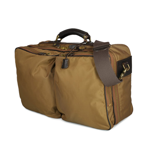Numa Felisi borsa da viaggio uomo a mano e tracolla realizzata in nylon colore cacao con finiture in pelle di vacchetta colore marrone scuro
