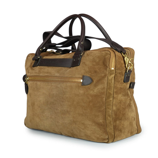 Amadeus Felisi borsa da lavoro accessoriata realizzata in pelle scamosciata colore cognac con finiture in pelle di vacchetta colore marrone scuro