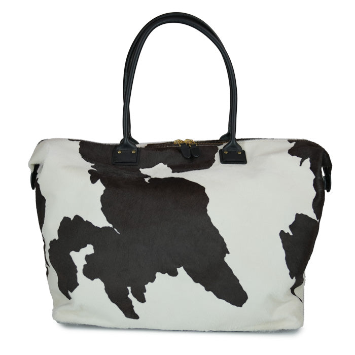 Jace di Felisi valigia uomo in cavallino di pelle di vitello maculato bianco e moro con finiture in pelle di vacchetta nero.