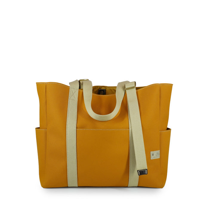 Walt Felisi tote bag in doppio canvas tecnico colore senape e tracolle regolabili in cotone